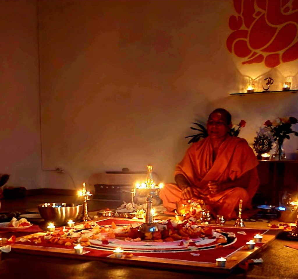 Die Yogastunde und der anschließende Satsang mit Swami Nivedanananda haben uns optimal eingestimmt auf die große Licht- und Verehrungszeremonie am Samstag den 13. September.